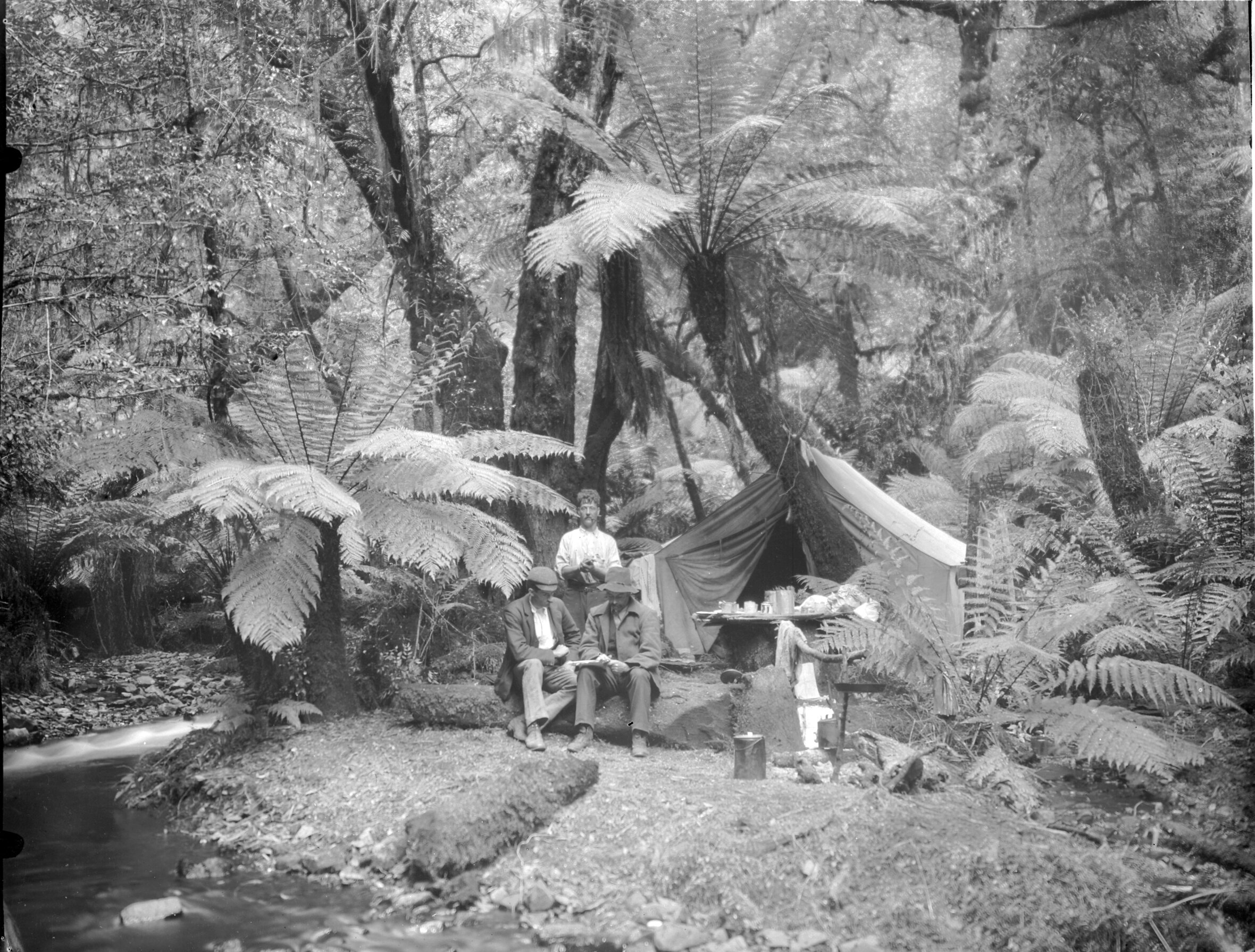An elaborate camp in the forest.