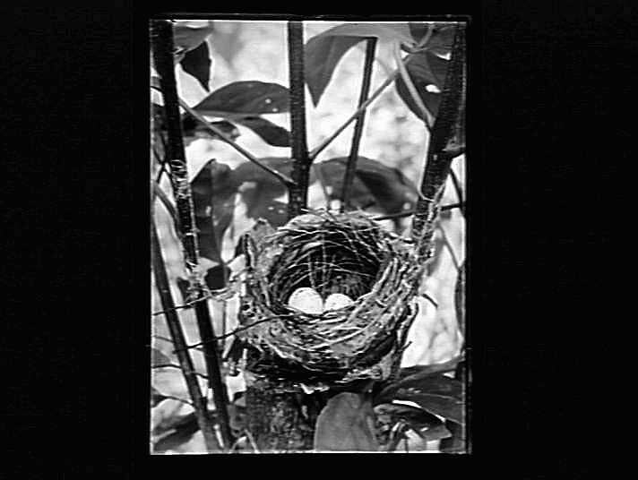 Robin whistler type nest and two eggs.