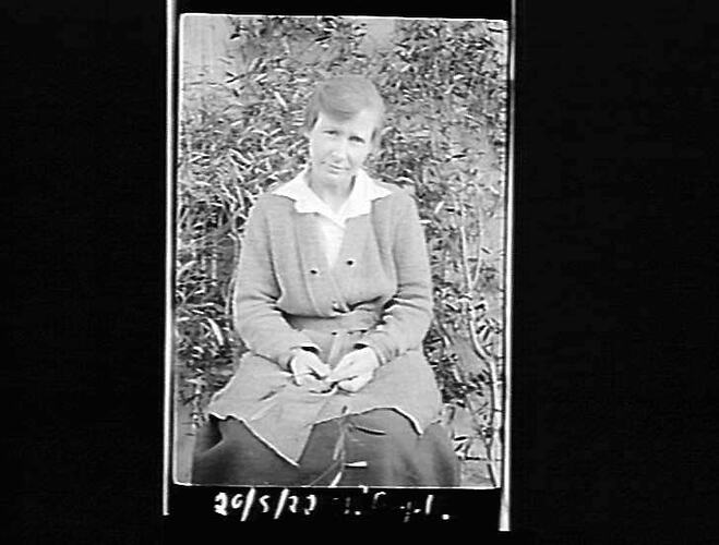 Black and white photographic negative by the photographer William (Bill) Boyd. The Bill Boyd Photographic Collection consists of 446 negatives on film and 56 photographs on paper depicting farming activities, family and the domestic life of people who settled the challenging wheat frontier of the Mallee, mainly in and around the towns of Nandaly & Sea Lake. The images were captured to highlight the vanishing pioneer atmosphere and to record agriculture techniques used during the 1920s. For detailed description of Boyd's life and work, see "Having a Go - Bill Boyd's Mallee" by Weston Bate, published in 1988. Most of the photographs were taken between 1920 & 1928. See separate records for detailed description of each negative. Descriptive data has been transcribed from interview with Bill Boyd in 1988.