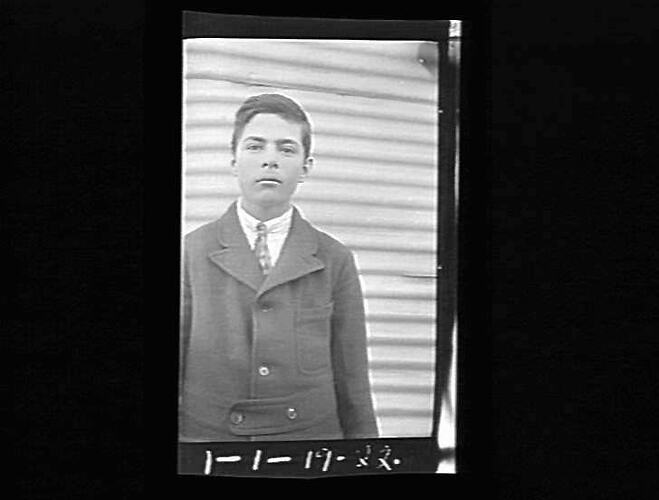 Black and white photographic negative by the photographer William (Bill) Boyd. The Bill Boyd Photographic Collection consists of 446 negatives on film and 56 photographs on paper depicting farming activities, family and the domestic life of people who settled the challenging wheat frontier of the Mallee, mainly in and around the towns of Nandaly & Sea Lake. The images were captured to highlight the vanishing pioneer atmosphere and to record agriculture techniques used during the 1920s. For detailed description of Boyd's life and work, see "Having a Go - Bill Boyd's Mallee" by Weston Bate, published in 1988. Most of the photographs were taken between 1920 & 1928. See separate records for detailed description of each negative. Descriptive data has been transcribed from interview with Bill Boyd in 1988.