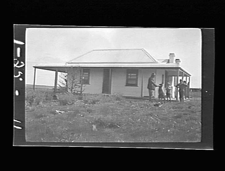 Group standing outside a farmhouse with a pet kangaroo also see coll. No.127.