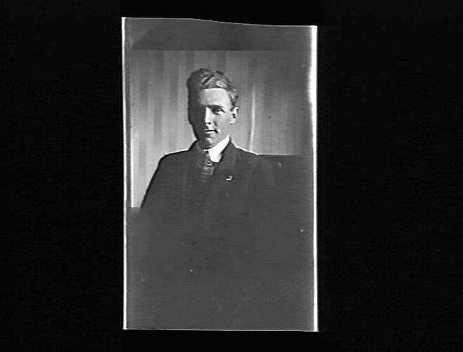 Black and white photographic negative by the photographer William (Bill) Boyd. The Bill Boyd Photographic Collection consists of 446 negatives on film and 56 photographs on paper depicting farming activities, family and the domestic life of people who settled the challenging wheat frontier of the Mallee, mainly in and around the towns of Nandaly & Sea Lake. The images were captured to highlight the vanishing pioneer atmosphere and to record agriculture techniques used during the 1920s. For detailed description of Boyd's life and work, see "Having a Go - Bill Boyd's Mallee" by Weston Bate, published in 1988. Most of the photographs were taken between 1920 & 1928. See separate records for detailed description of each negative. Descriptive data has been transcribed from interview with Bill Boyd in 1988.