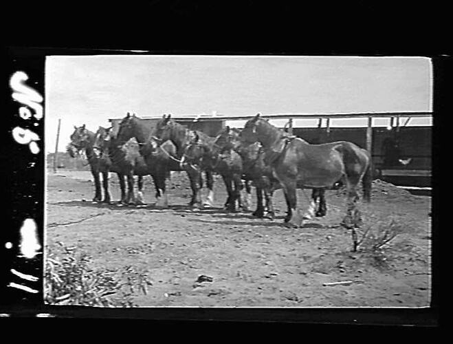 Black and white photographic negative by the photographer William (Bill) Boyd. The Bill Boyd Photographic Collection consists of 446 negatives on film and 56 photographs on paper depicting farming activities, family and the domestic life of people who settled the challenging wheat frontier of the Mallee, mainly in and around the towns of Nandaly & Sea Lake. The images were captured to highlight the vanishing pioneer atmosphere and to record agriculture techniques used during the 1920s. For detailed description of Boyd's life and work, see "Having a Go - Bill Boyd's Mallee" by Weston Bate, published in 1988. Most of the photographs were taken between 1920 & 1928. See separate records for detailed description of each negative. Descriptive data has been transcribed from interview with Bill Boyd in 1988.