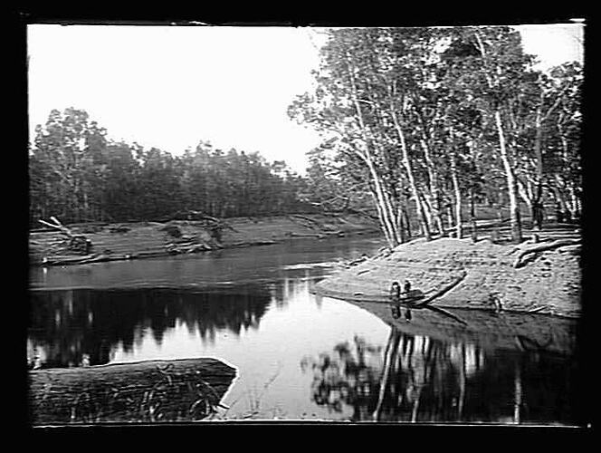 Junction of Murray and Goulburn (summer level) River scene confluence of two rivers.