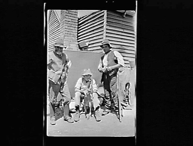 Black and white photographic negative by the photographer William (Bill) Boyd. The Bill Boyd Photographic Collection consists of 446 negatives on film and 56 photographs on paper depicting farming activities, family and the domestic life of people who settled the challenging wheat frontier of the Mallee, mainly in and around the towns of Nandaly & Sea Lake. The images were captured to highlight the vanishing pioneer atmosphere and to record agriculture techniques used during the 1920s. For detailed description of Boyd's life and work, see "Having a Go - Bill Boyd's Mallee" by Weston Bate, published in 1988. Most of the photographs were taken between 1920 & 1928. See separate records for detailed description of each negative. Descriptive data has been transcribed from interview with Bill Boyd in 1988.
