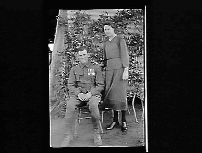 Black and white photographic negative by the photographer William (Bill) Boyd. The Bill Boyd Photographic Collection consists of 446 negatives on film and 56 photographs on paper depicting farming activities, family and the domestic life of people who settled the challenging wheat frontier of the Mallee, mainly in and around the towns of Nandaly & Sea Lake. The images were captured to highlight the vanishing pioneer atmosphere and to record agriculture techniques used during the 1920s. For detailed description of Boyd's life and work, see "Having a Go - Bill Boyd's Mallee" by Weston Bate, published in 1988. Most of the photographs were taken between 1920 & 1928. See separate records for detailed description of each negative. Descriptive data has been transcribed from interview with Bill Boyd in 1988.