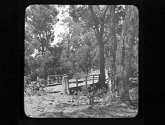 Wooden bridge amongst trees also see lantern slides 38 and 39.