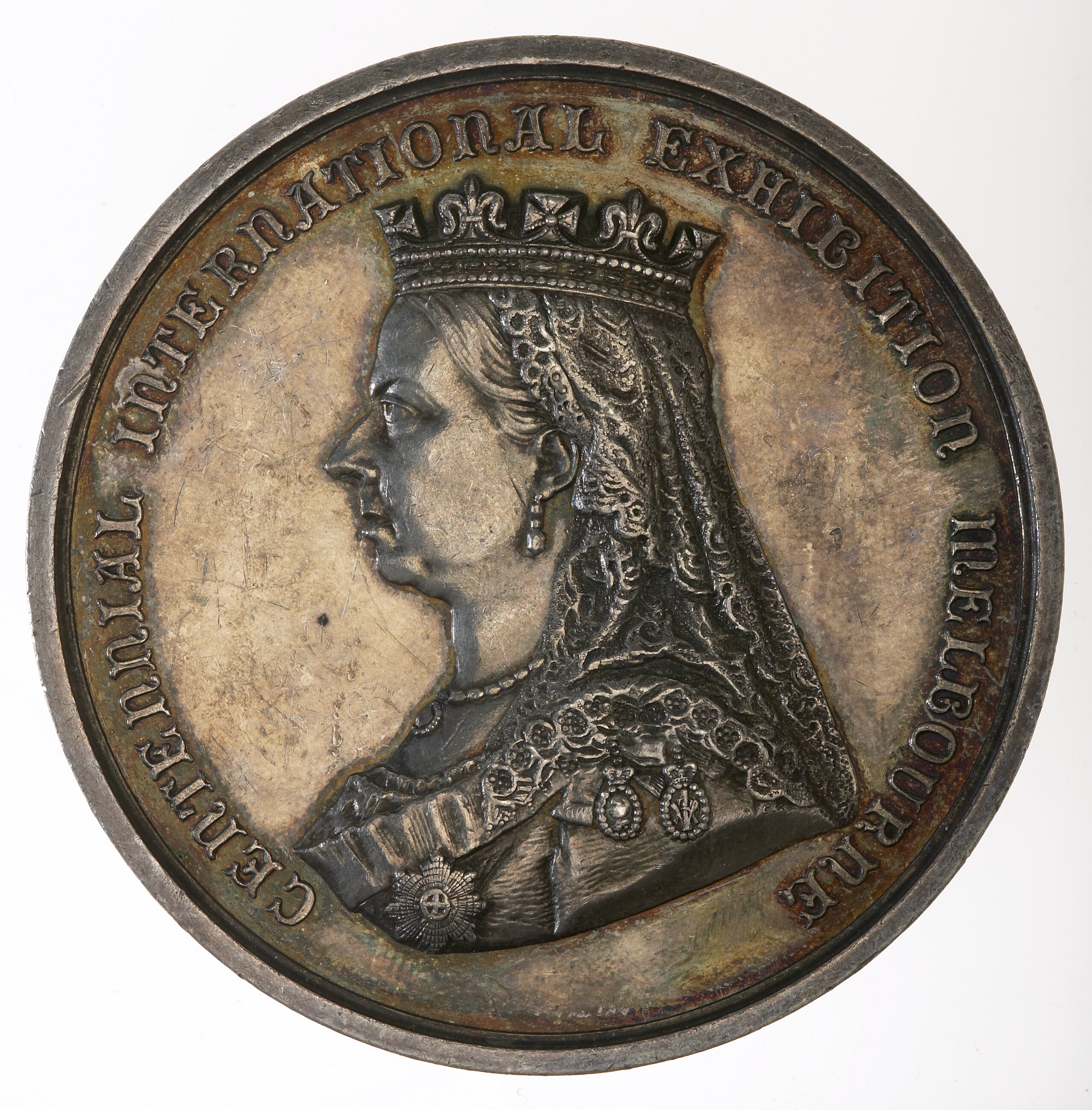 Crowned bust of Victoria left; around, CENTENNIAL INTERNATIONAL EXHIBITION MELBOURNE