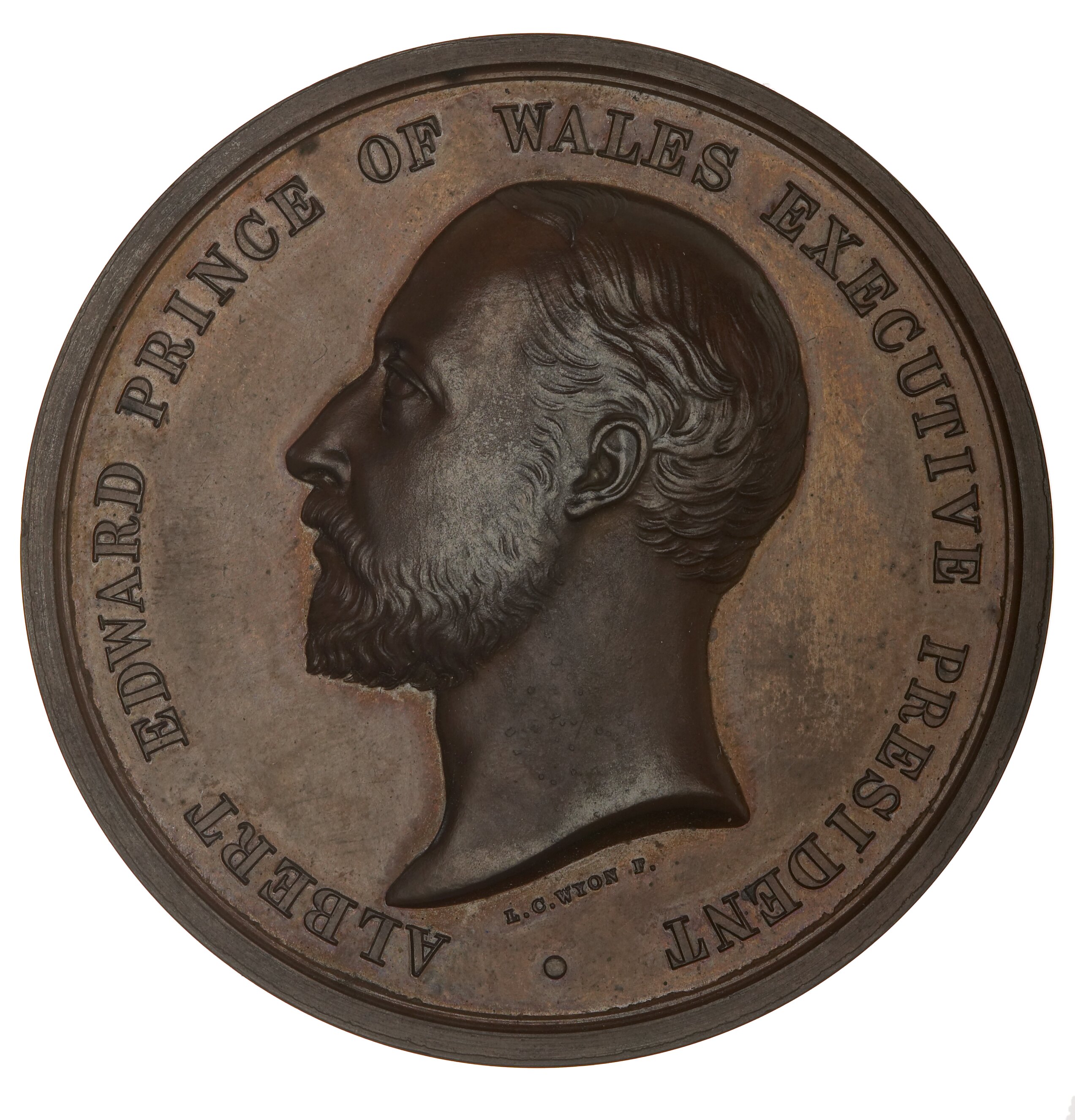 Head of the Prince of Wales left, around, ALBERT EDWARD PRINCE OF WALES EXECUTIVE PRESIDENT; below head, L.C.WYON F.