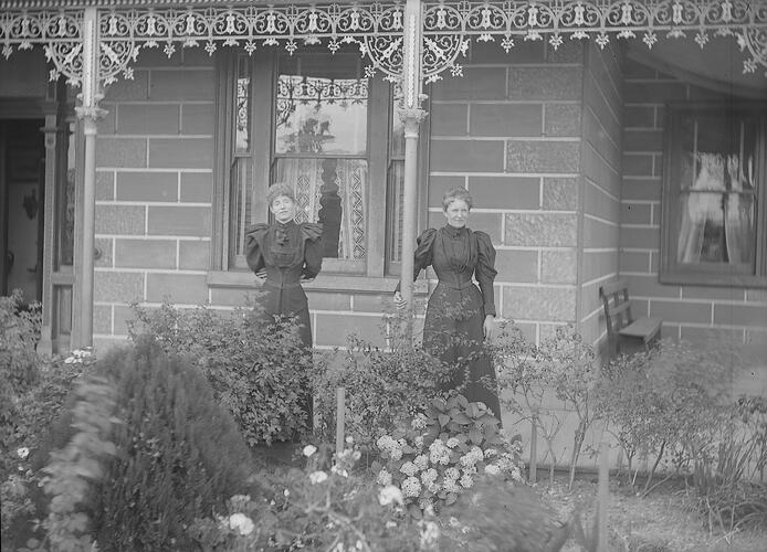 The two Misses Hanchettes, standing on their verandah, Westbourne Grove, Northcote, Victoria, January 1895.