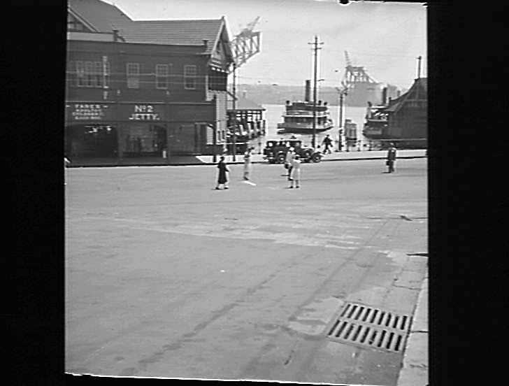 Circular Quay no.2 jetty. Features view of Sydney Harbour Bridge construction.