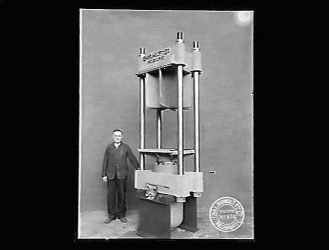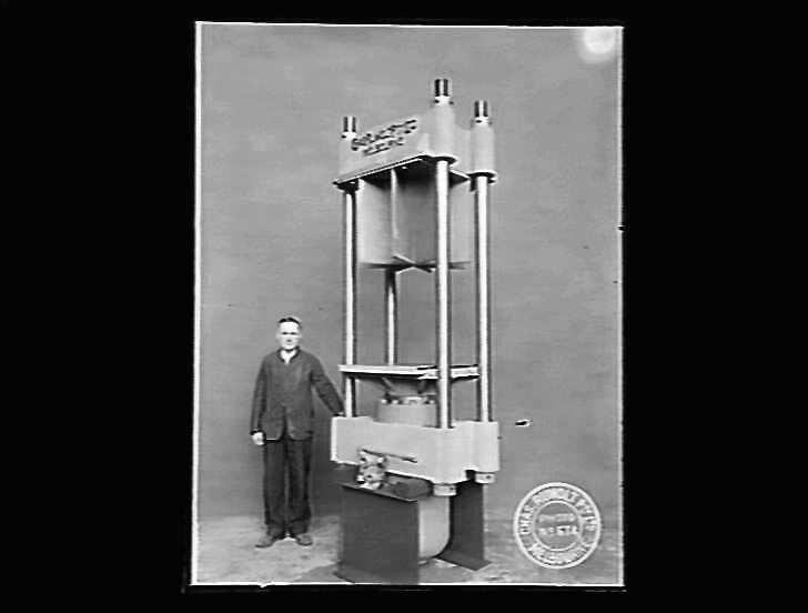'Rubber cutting press, Olympic Tyre & Rubber Co.' Jul. 1934.