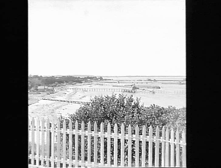 Queenscliff, view overlooking beach, piers and sea baths.