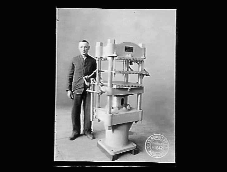 '18'x21' platen press (with steam heated platens,) Olympic Tyre & Rubber Co.' Feb. 1934.