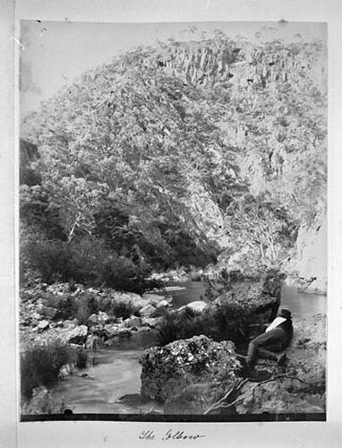 Image taken by A.J. Campbell on one of two camp outings with the Working Men's College Photographic Club to Werribee Gorge in November 1895 and 1896. The image is part of a Photograph album containing 181 black and white and sepia toned photographs taken by A.J. Campbell, ornithologist, during field trips to various parts of Australia. One of two albums covering these trips [see also HT 15824]