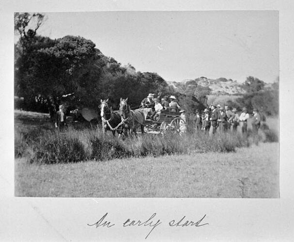 Image taken by A.J. Campbell on a camping trip to Phillip Island with the Ornithology Union in November 1902. From a photograph album containing 181 black & white and sepia toned photographs taken by Archibald James Campbell, ornithologist, during field trips to various parts of Australia. One of two albums covering these trips [see also HT 15824].