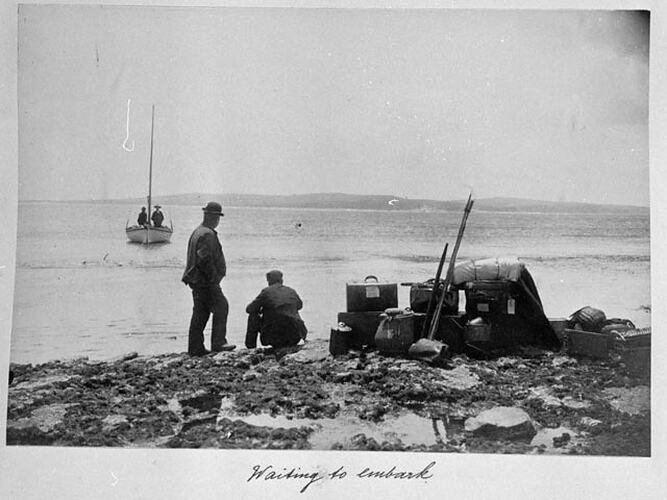 Image taken by A.J. Campbell on a Mutton- Bird Egging trip to Phillip Island in November 1896. The image is part of a Photograph album containing 181 black and white and sepia toned photographs taken by A.J. Campbell, ornithologist, during field trips to various parts of Australia. One of two albums covering these trips [see also HT 15824]