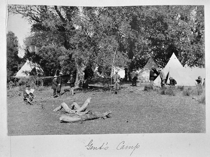 Image taken by A.J. Campbell on a camping trip to Phillip Island with the Ornithology Union in November 1902. From a photograph album containing 181 black & white and sepia toned photographs taken by Archibald James Campbell, ornithologist, during field trips to various parts of Australia. One of two albums covering these trips [see also HT 15824].