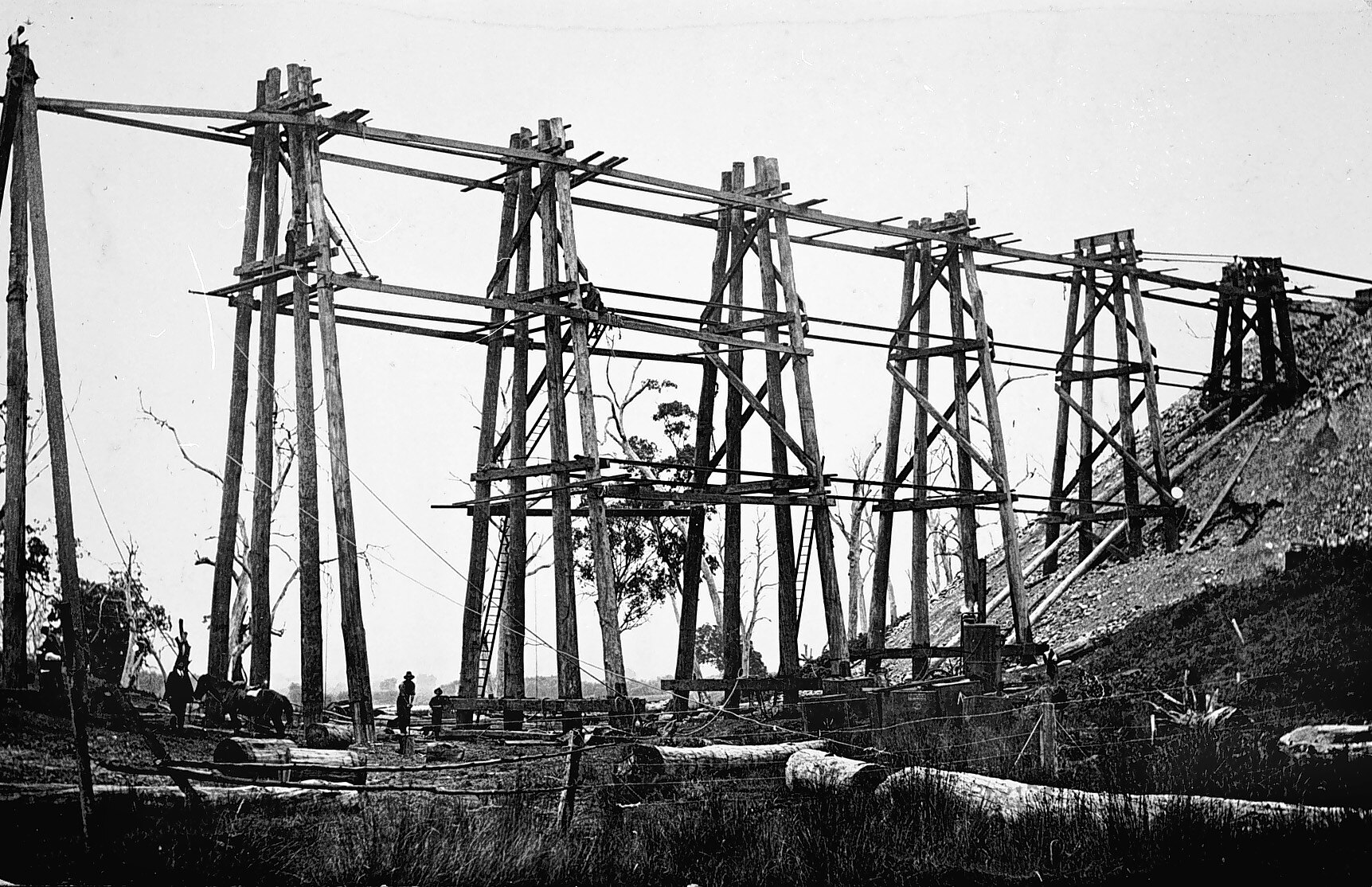 Bairnsdale-Orbost Railway, Bridges, Building & Construction, Construction Workers, Horses, Railway Bridges, Railway Construction