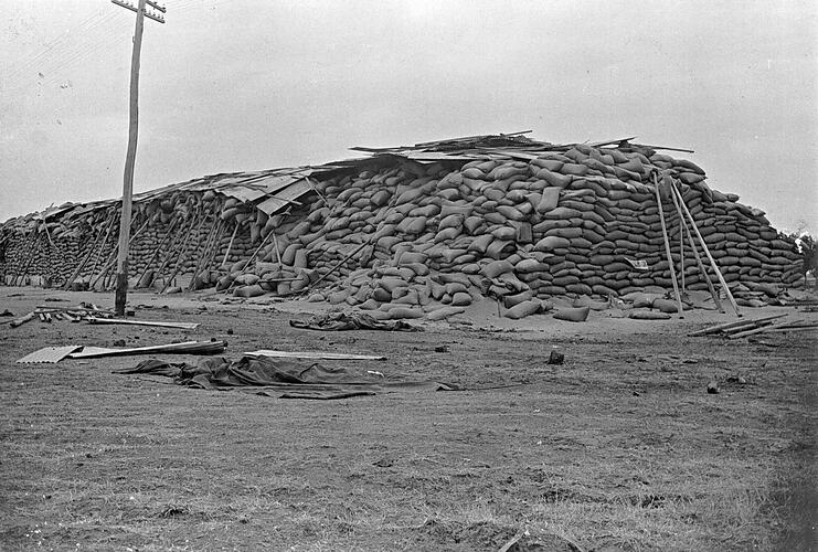 Ruined grain stacks after a mice plague at the Warracknabeal railway yards.