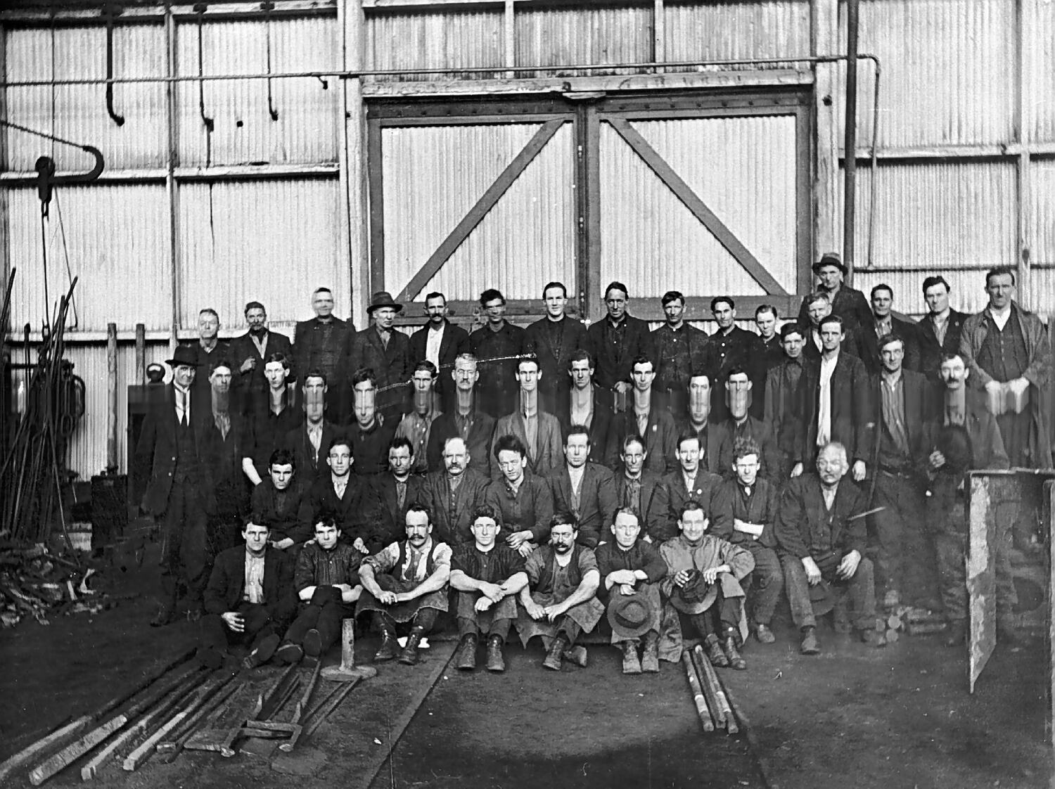 Blacksmith 's shop workers at the Ballarat North Railway Workshops.
