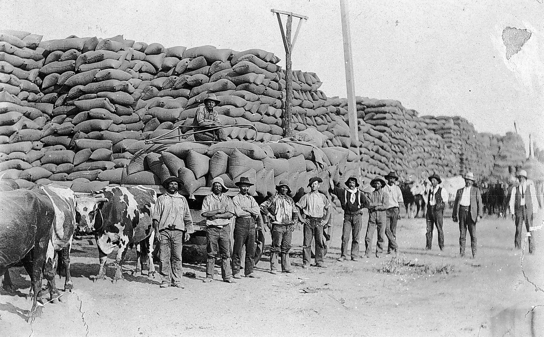 Agricultural Produce, Bagged Crops, Bullock Teams, Cereal Crops, Grain Stacks, Railway Yards, Sacks, Wheat