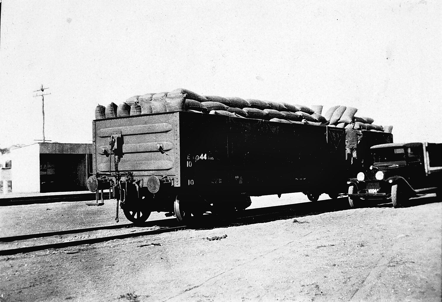 Frank Wood, FrankA railway truck full of wheat bags at Thurla Railway Station. (see also MM 005233).