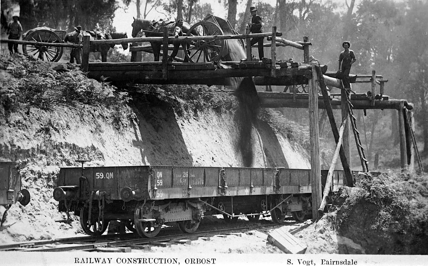 Dumping ballast into railway trucks on the Orbost to Bairnsdale line.