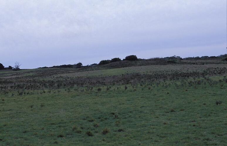 Part of panoramic view of paddocks surrounding Melbourne Coastal Radio Station, Cape Schanck, Victoria