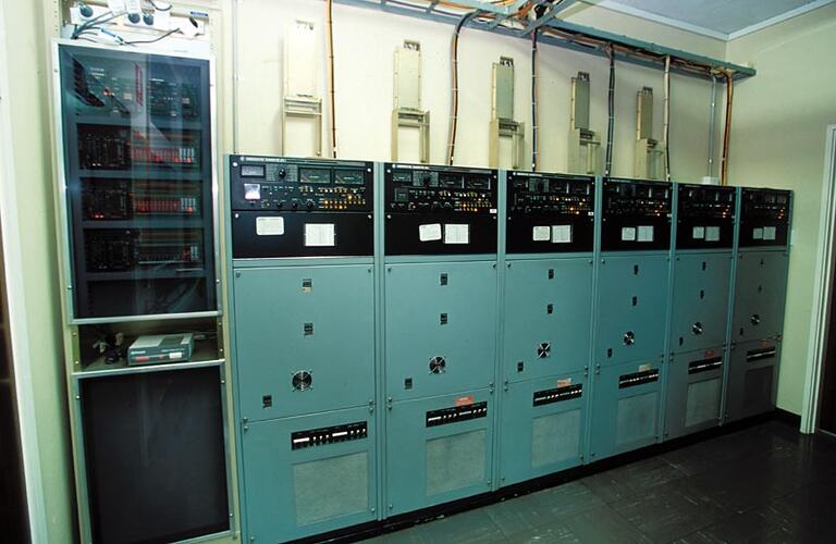 This image is one of a series taken at the Melbourne Radio Station at Cape Schanck, just prior to its closure on 30 June 2002. The image was taken by a Museum Victoria photographer.