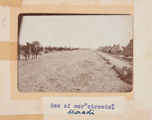 Image depicitng a 'street' in the Maadi Camp, Egypt. El-Ma'adi (Meadi) Camp was one of three training camps in Egypt that were used by the A.I.F. and the N.Z.E.F.