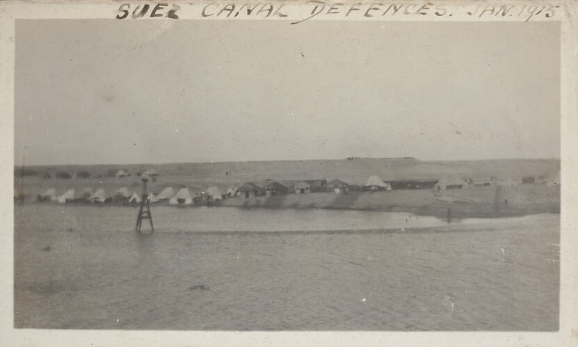 The photograph was taken when Millar traveled through the Suez canal in January 1915 enroute to Egypt with the 5th Light Horse Regiment.