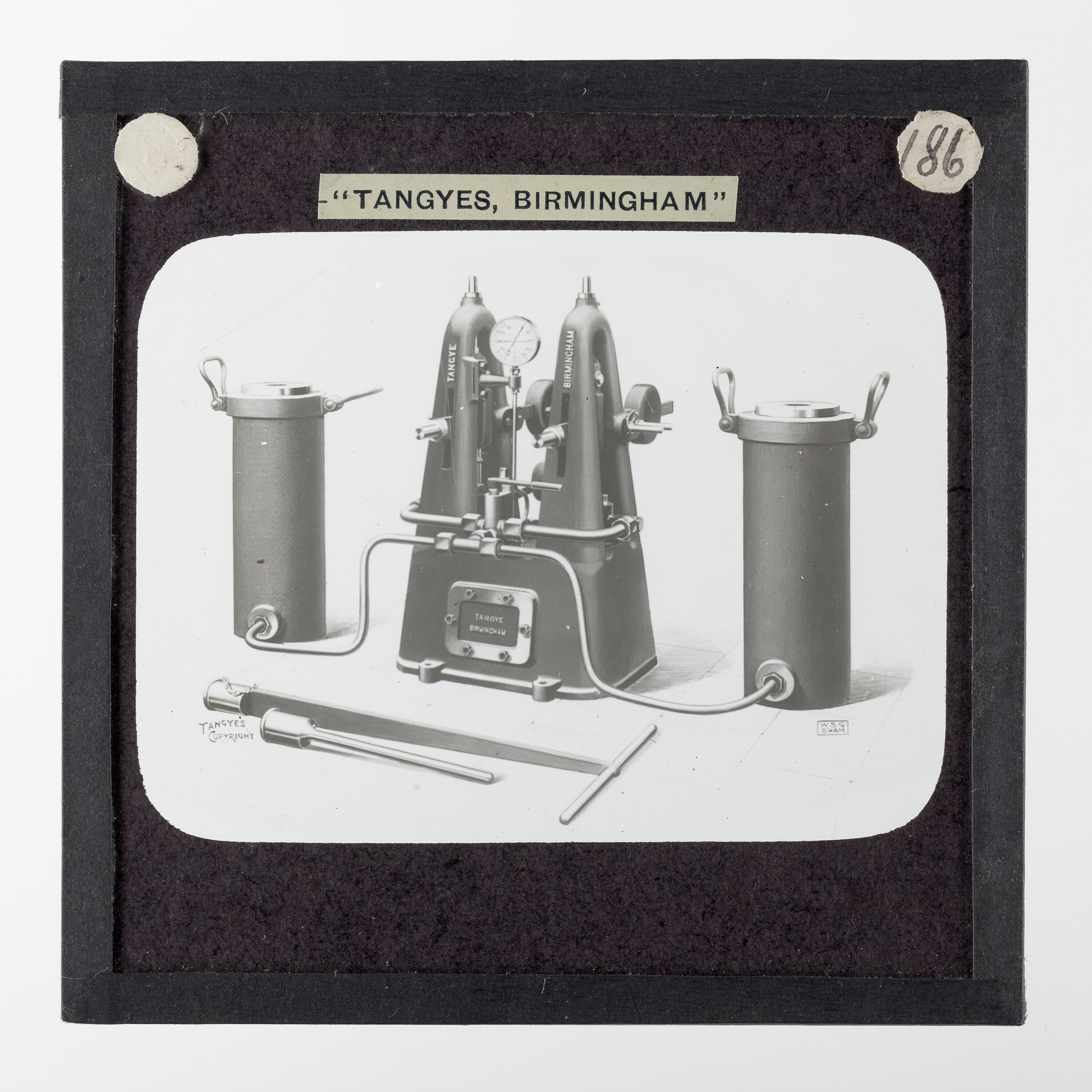 It is thought that this collection of magic lantern slides was used by a local agent for sales purposes. These images were originally used to illustrate Tangyes Ltd product catalogues from the period 1910 - circa 1920s.