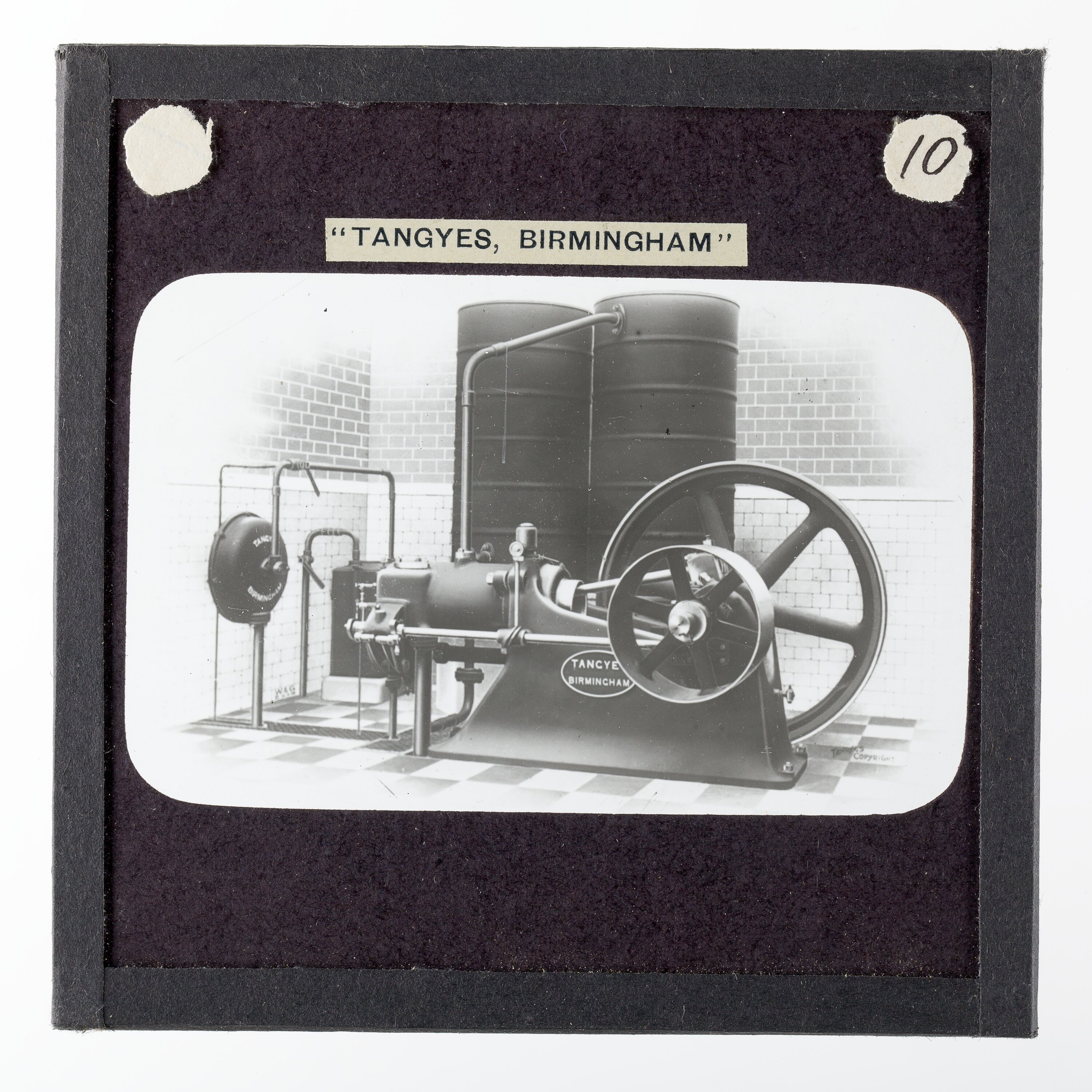 It is thought that this collection of magic lantern slides was used by a local agent for sales purposes. These images were also used to illustrate Tangyes Ltd product catalogues from the period 1910 - circa 1920s.