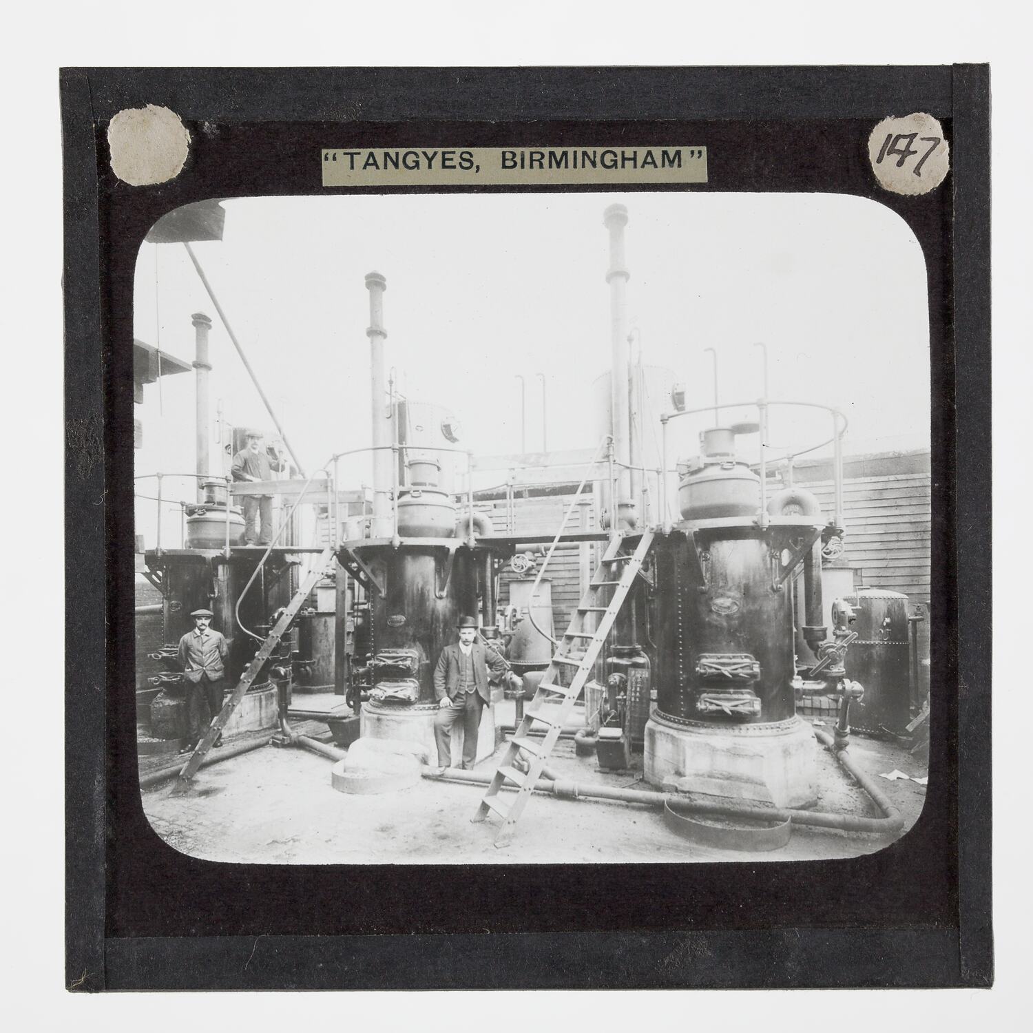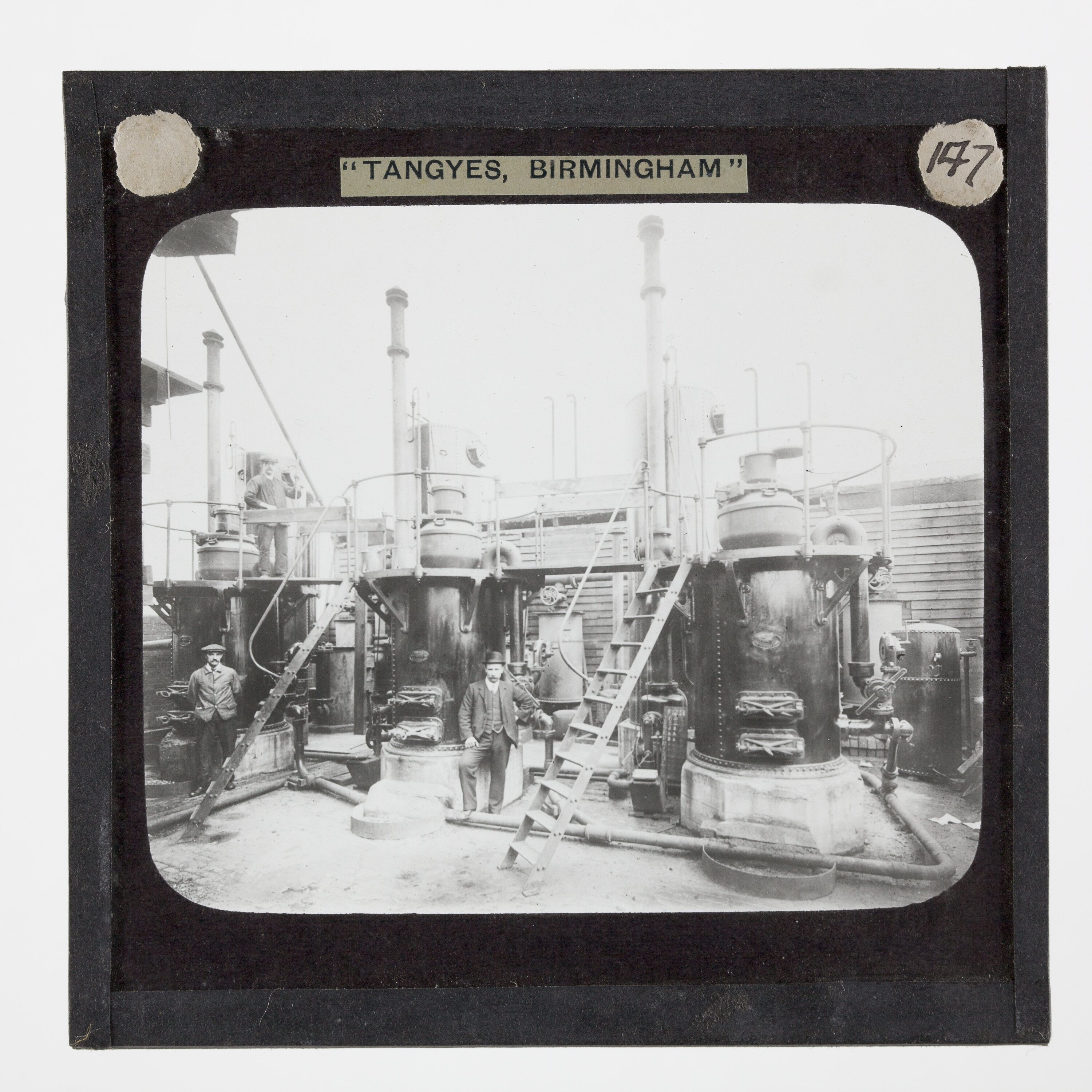 It is thought that this collection of magic lantern slides was used by a local agent for sales purposes. These images were originally used to illustrate Tangyes Ltd product catalogues from the period 1910 - circa 1920s.