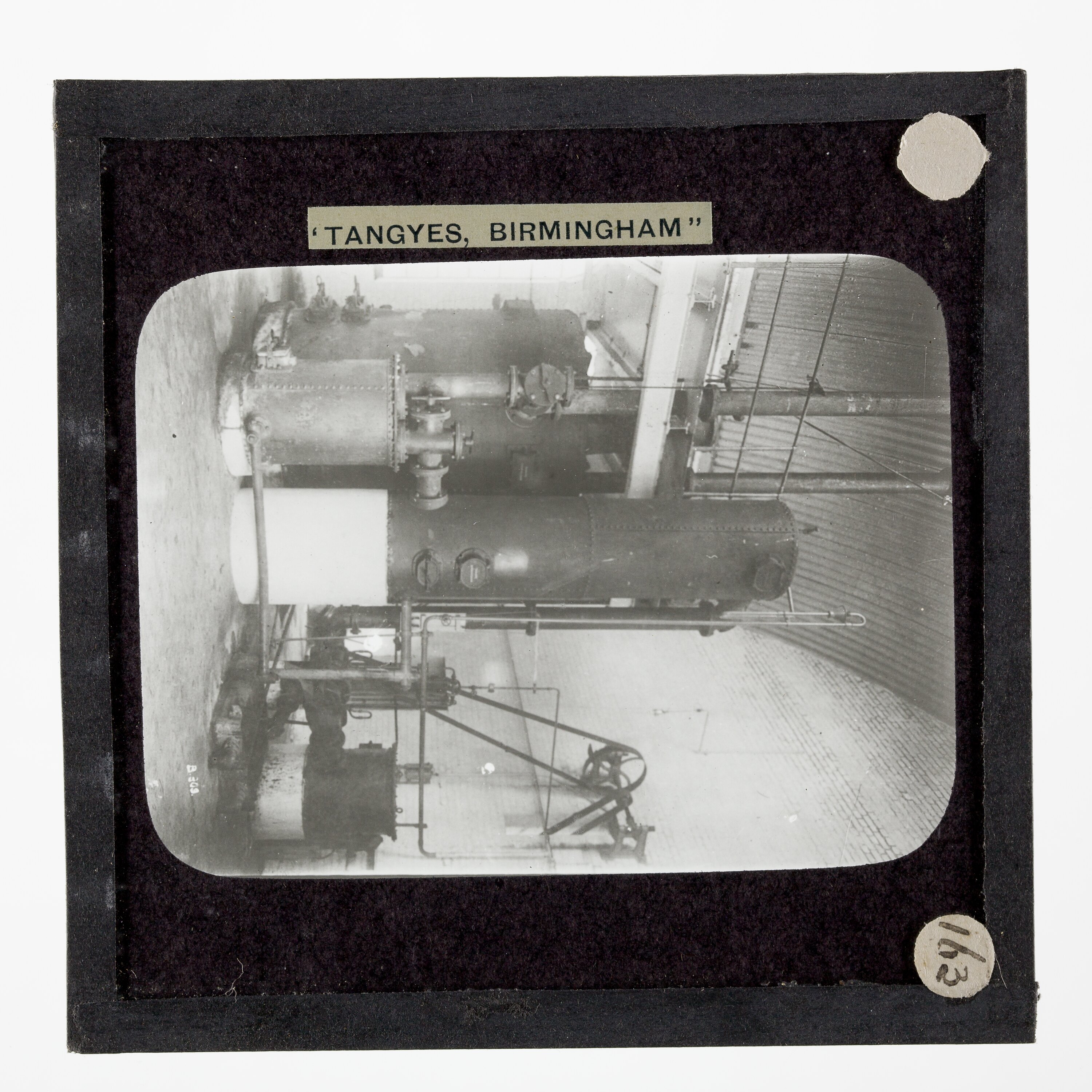It is thought that this collection of magic lantern slides was used by a local agent for sales purposes. These images were originally used to illustrate Tangyes Ltd product catalogues from the period 1910 - circa 1920s.