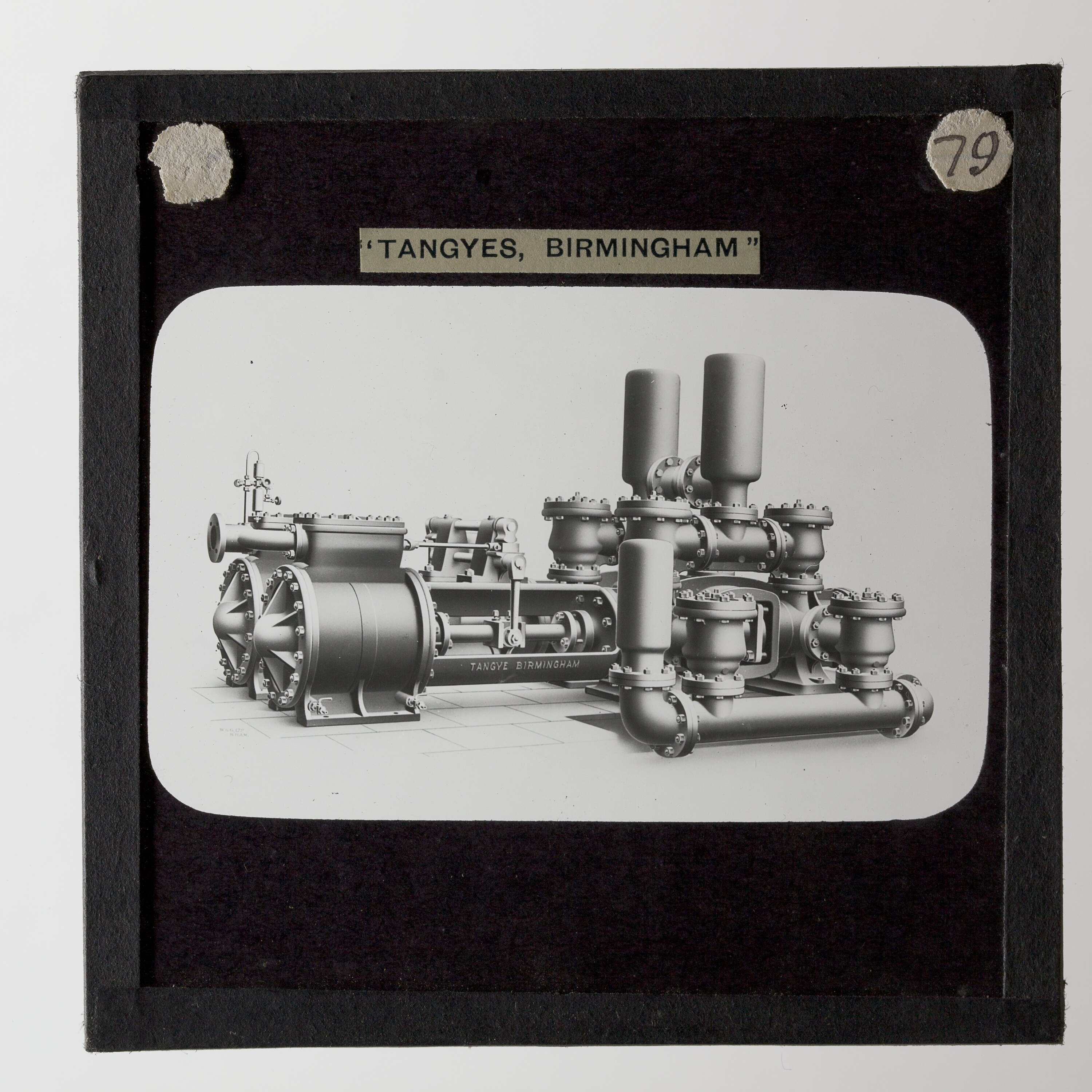 It is thought that this collection of magic lantern slides was used by a local agent for sales purposes. These images were originally used to illustrate Tangyes Ltd product catalogues from the period 1910 - circa 1920s.