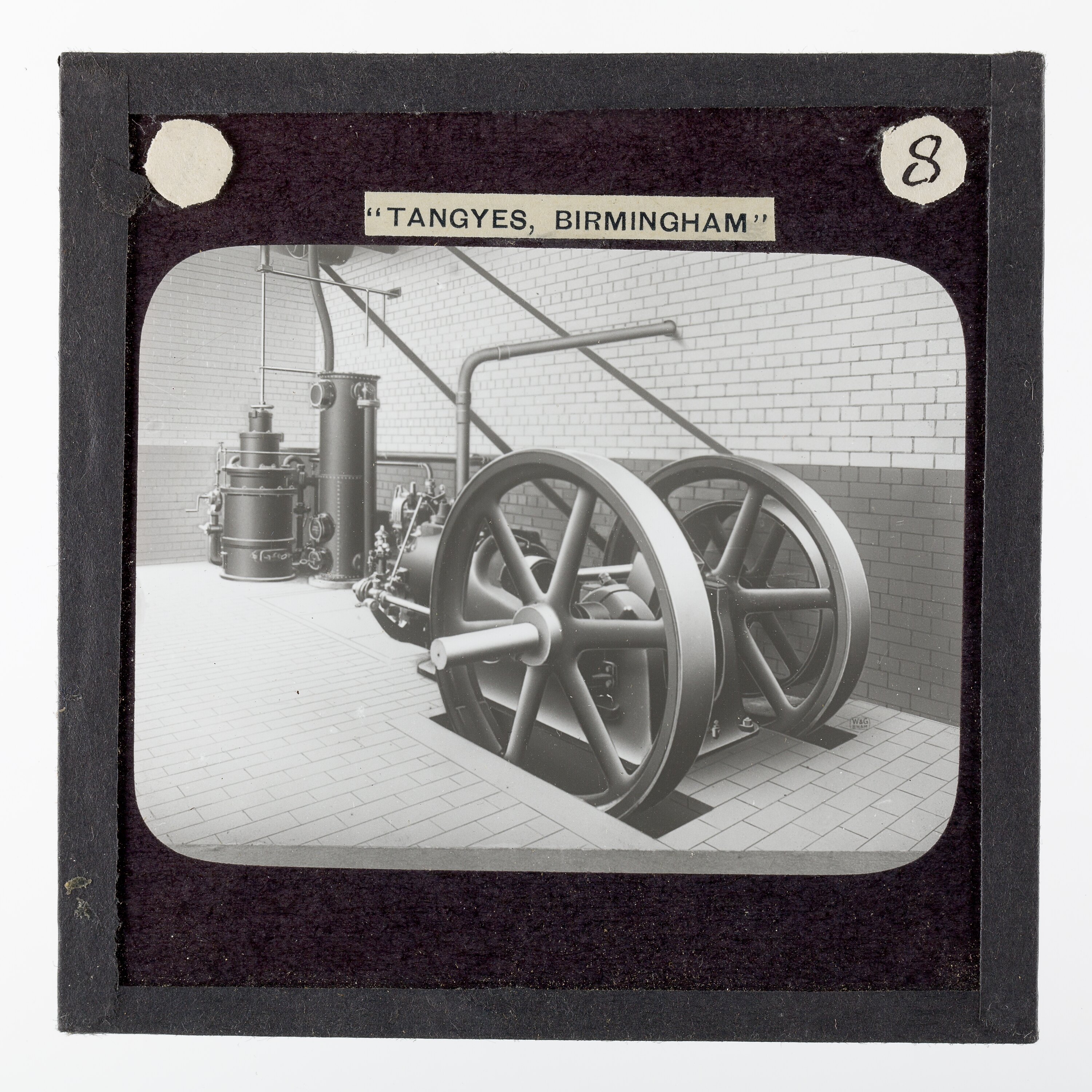 It is thought that this collection of magic lantern slides was used by a local agent for sales purposes. These images were also used to illustrate Tangyes Ltd product catalogues from the period 1910 - circa 1920s.