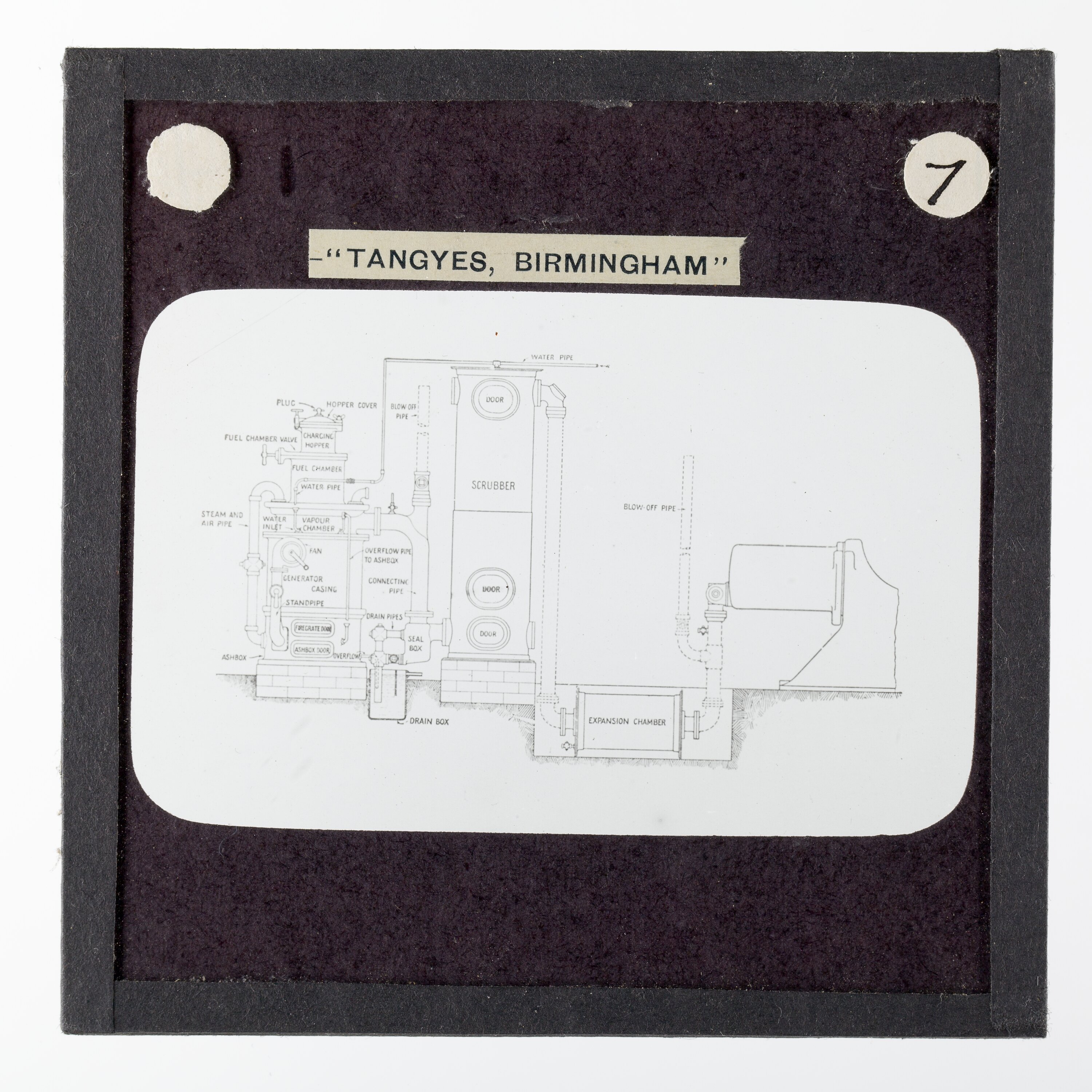 It is thought that this collection of magic lantern slides was used by a local agent for sales purposes. These images were also used to illustrate Tangyes Ltd product catalogues from the period 1910 - circa 1920s.