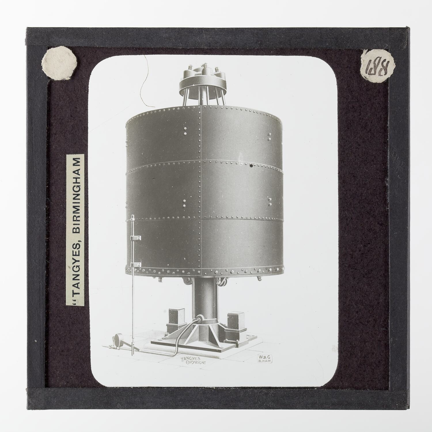It is thought that this collection of magic lantern slides was used by a local agent for sales purposes. These images were originally used to illustrate Tangyes Ltd product catalogues from the period 1910 - circa 1920s.