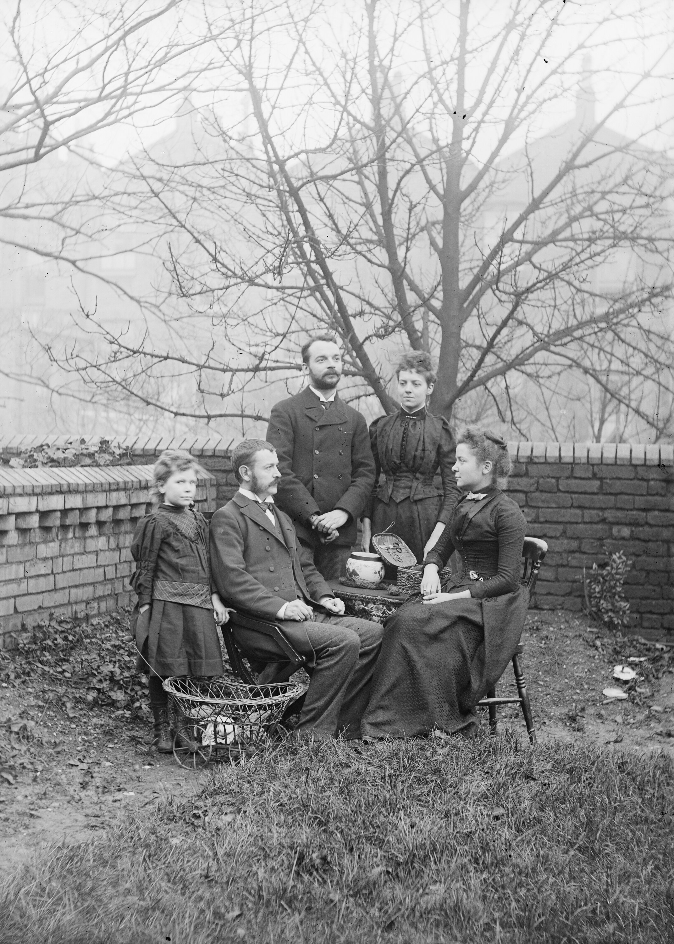 Portrait of Thomas Beckett's brothers and sisters, Harry, Alice, Kitty & Nellie Beckett, taken in London, England, 1891. The child, Tom, is presumably a child of one of the siblings.