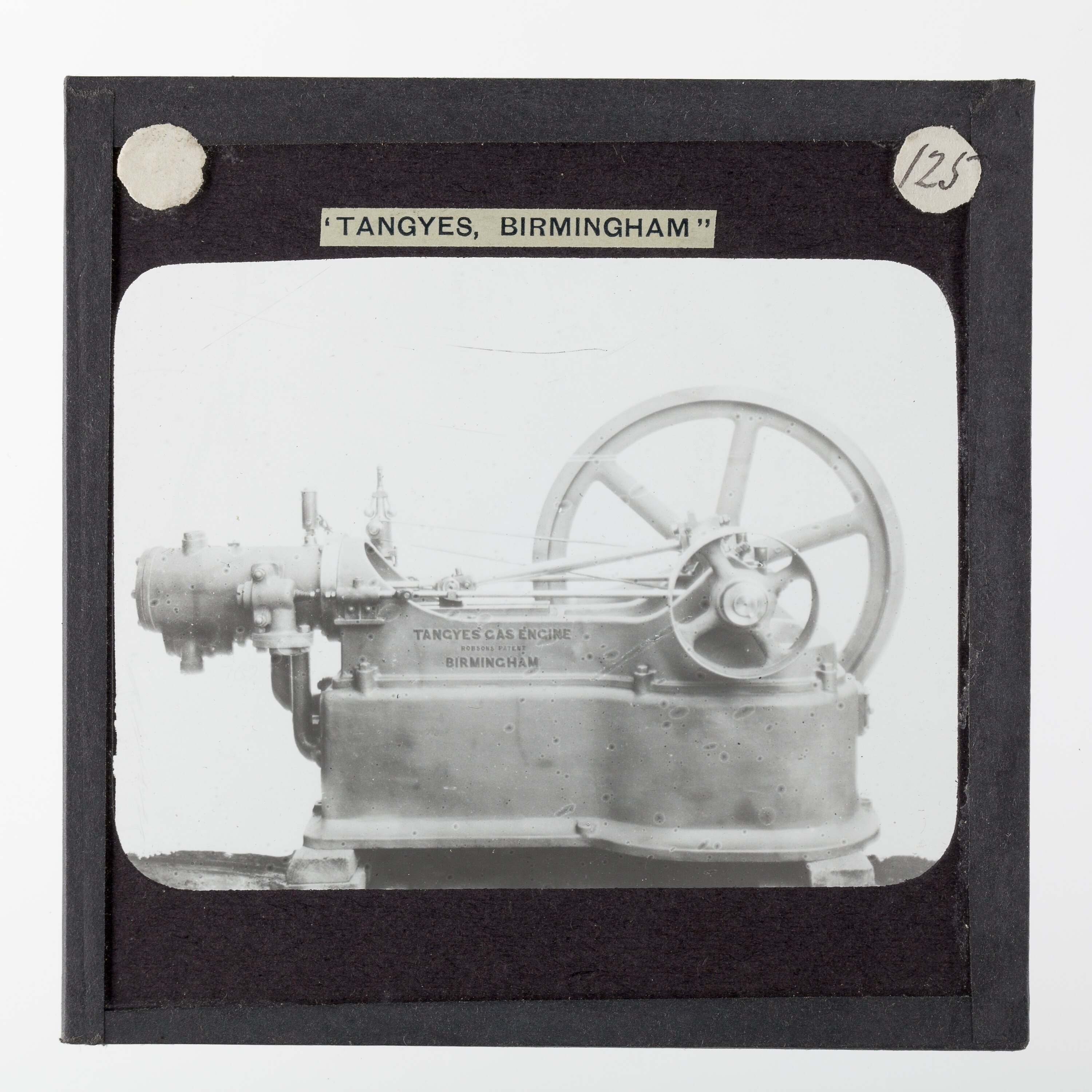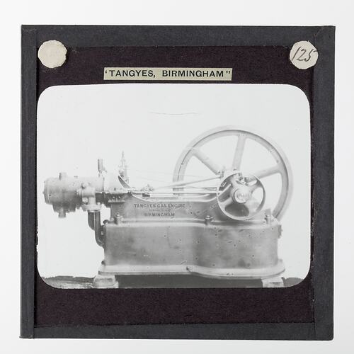 One of 239 glass lantern slides depicting products manufactured by Tangyes Limited engineers of Birmingham, England. The images include various products such as engines, centrifugal pumps, hydraulic pumps, gas producers, materials testing machines, presses, machine tools, hydraulic jacks etc. Tangyes was a company which operated from 1857 to 1957. They produced a wide variety of engineering products exported worldwide including Australia and other British colonies.