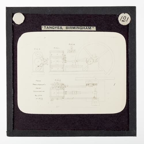 One of 239 glass lantern slides depicting products manufactured by Tangyes Limited engineers of Birmingham, England. The images include various products such as engines, centrifugal pumps, hydraulic pumps, gas producers, materials testing machines, presses, machine tools, hydraulic jacks etc. Tangyes was a company which operated from 1857 to 1957. They produced a wide variety of engineering products exported worldwide including Australia and other British colonies.