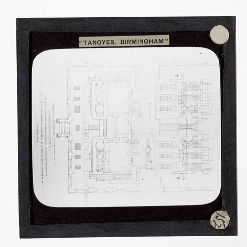 One of 239 glass lantern slides depicting products manufactured by Tangyes Limited engineers of Birmingham, England. The images include various products such as engines, centrifugal pumps, hydraulic pumps, gas producers, materials testing machines, presses, machine tools, hydraulic jacks etc. Tangyes was a company which operated from 1857 to 1957. They produced a wide variety of engineering products exported worldwide including Australia and other British colonies.