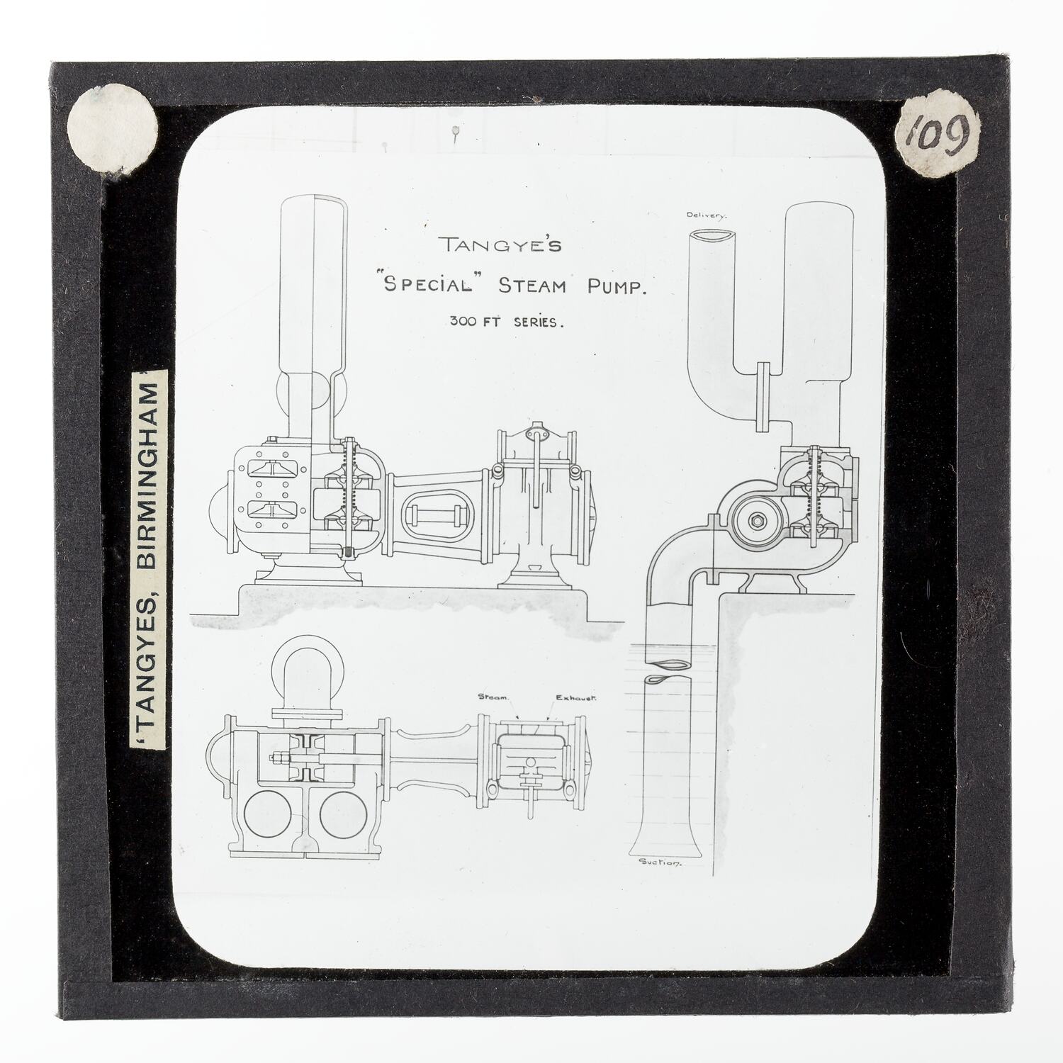 It is thought that this collection of magic lantern slides was used by a local agent for sales purposes. These images were originally used to illustrate Tangyes Ltd product catalogues from the period 1910 - circa 1920s.