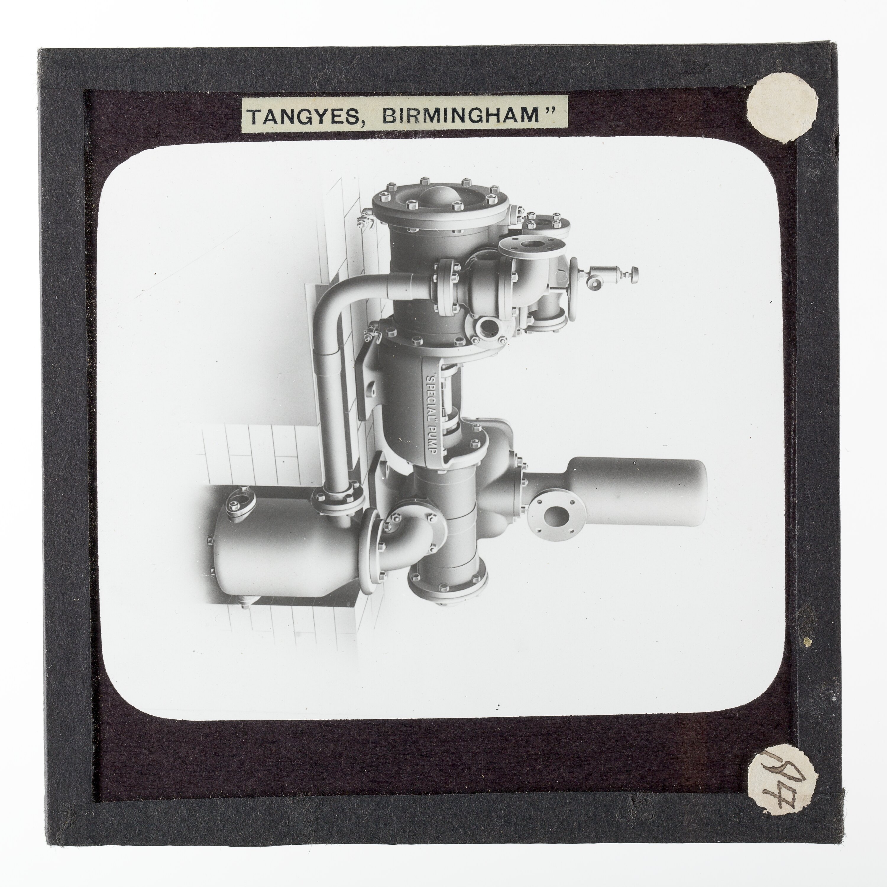 It is thought that this collection of magic lantern slides was used by a local agent for sales purposes. These images were originally used to illustrate Tangyes Ltd product catalogues from the period 1910 - circa 1920s.
