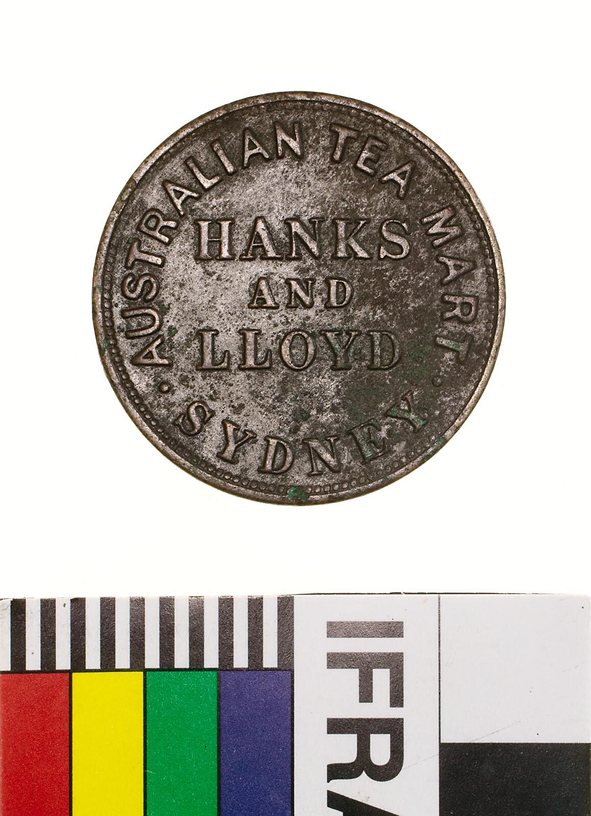 Obverse: HANKS AND LLOYD AUSTRALIAN TEA MART SYDNEY Reverse: TO COMMEMORATE THE OPENING OF THE SYDNEY RAILWAY 20TH. SEPTR. 1855