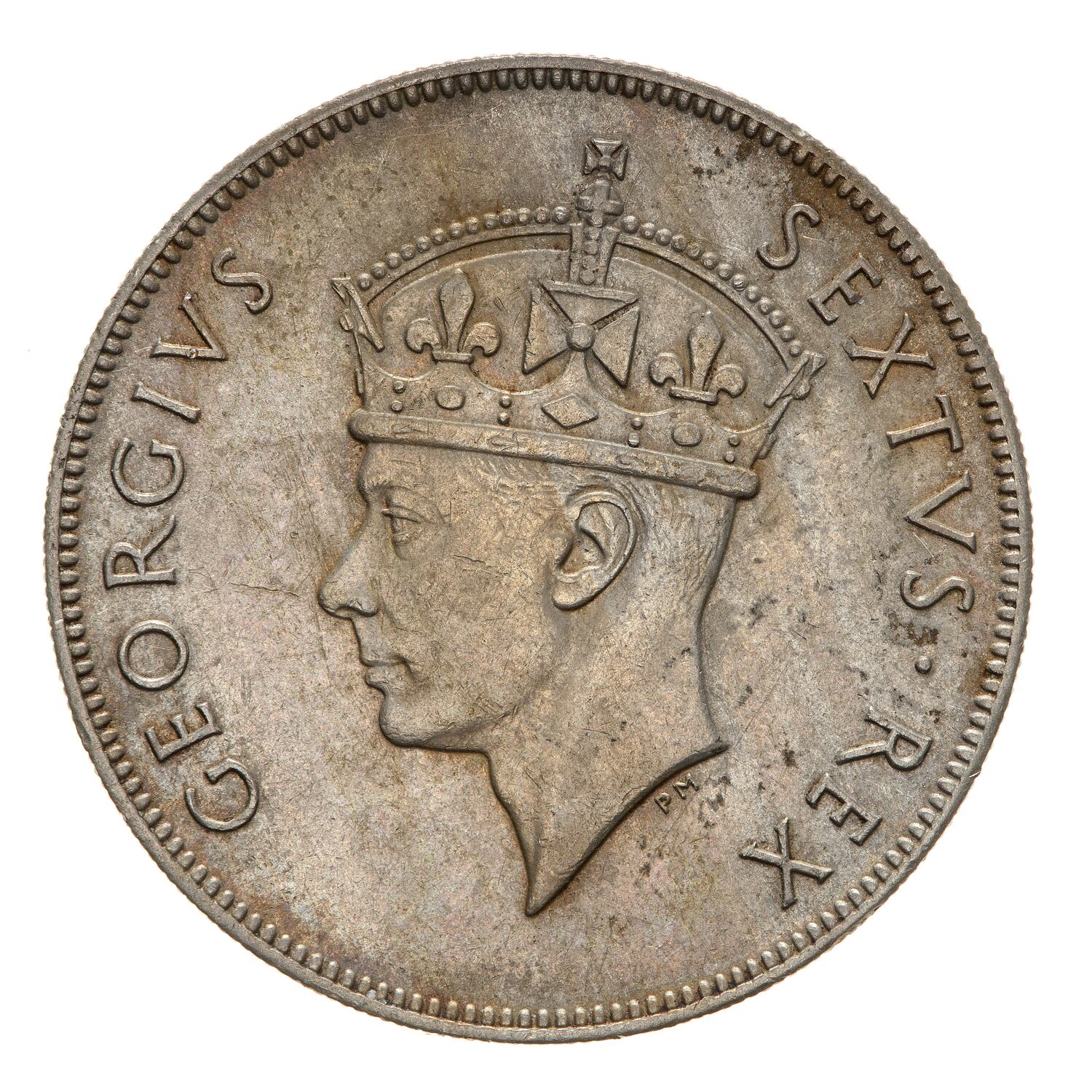 Crowned head of the king facing left; around, GEORGIVS SEXTVS REX; artist's initials, PM, below head