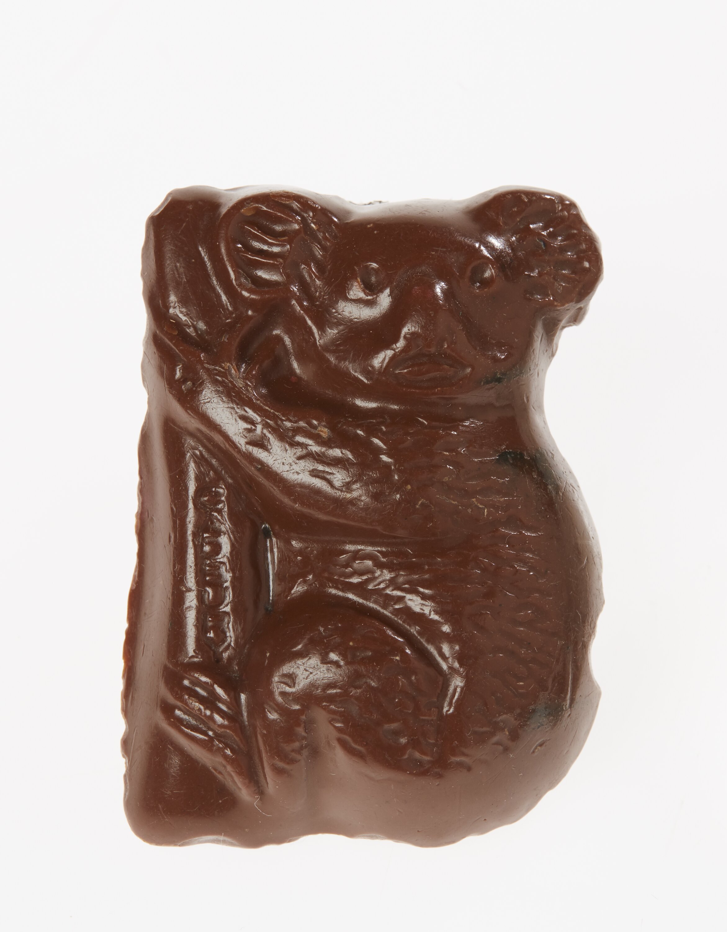 Painted plaster koala produced by Cadbury's to promote the Caramello Koala chocolate product. It was designed for use as a display item for milk bars.