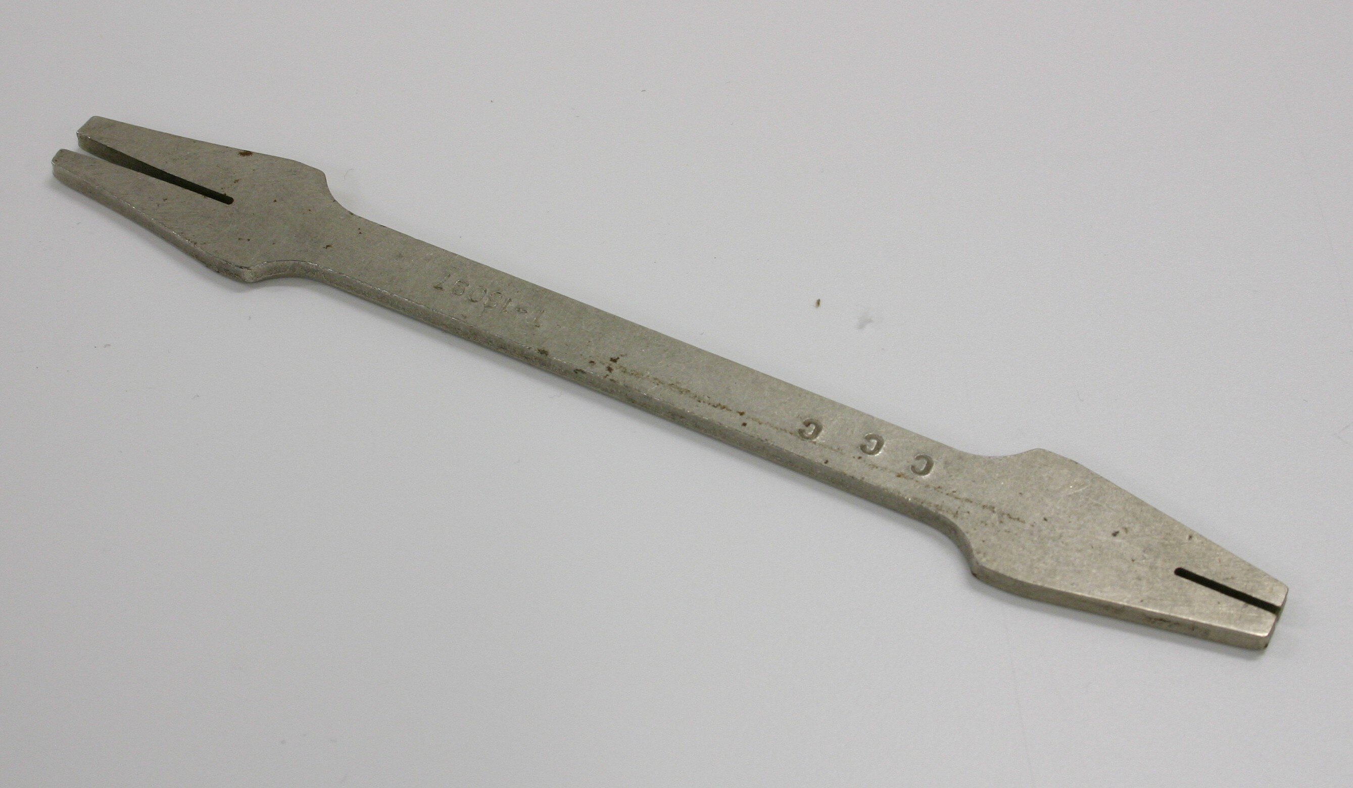 A Friden Flexowriter Forming Tool. Used by the donor in his capacity as maintenance engineer for Friden Flexowriter equipment. He had responsibility for the Flexowriters used with CSIRAC at the University of Melbourne.